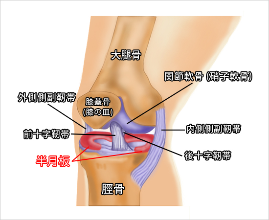 半月板は軟骨組織で構成され、膝の滑らかな動作を支えるとともに、膝関節を守る重要な存在です。