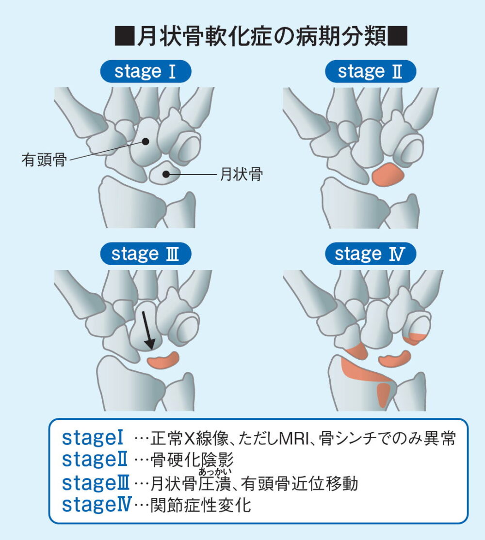 月状骨は他の手首の骨に比べて血流が少ないという特徴があり、一度脱臼すると自然に回復するのが難しくなります。そのため、早期の診断と治療が不可欠です。
